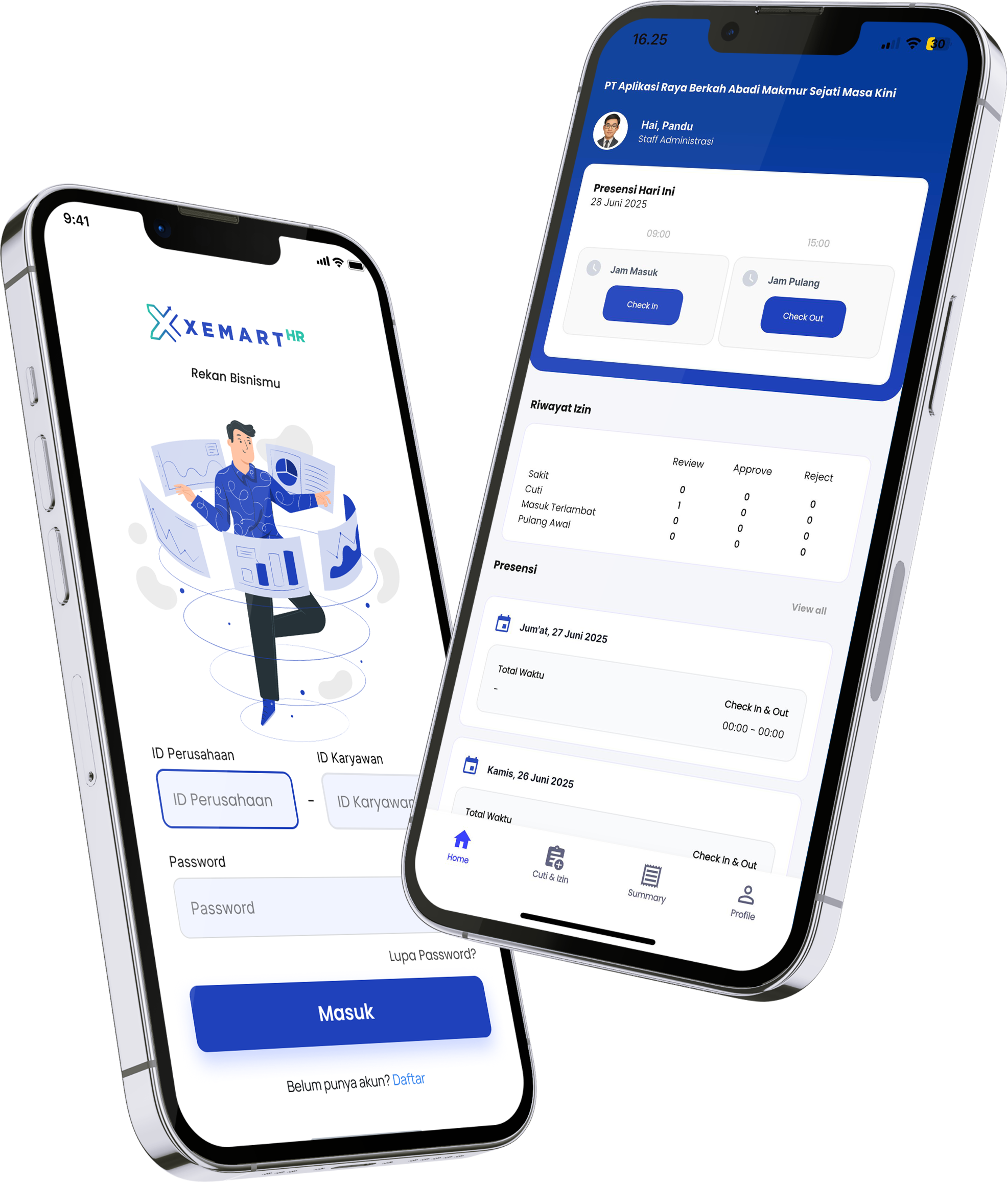Karyawan dapat mengunduh aplikasi XEMART HR pada Google Play Store atau App Store, kemudian melakukan instalasi aplikasi tersebut.